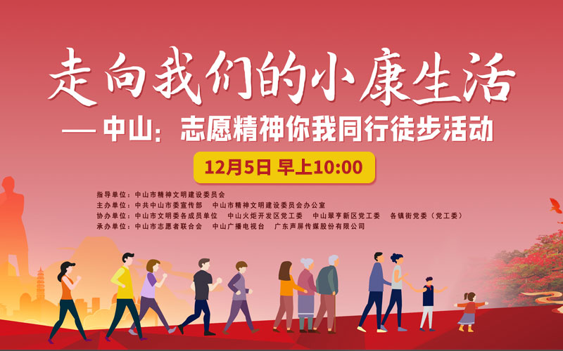 12月5日是第35個(gè)國(guó)際志愿者日,我市目前正舉辦“走向我們的小康生活”——中山市志愿服務(wù)周系列活動(dòng)。11月30日至12月6日期間志愿周期間,全市各鎮(zhèn)街將陸續(xù)開(kāi)展志愿宣講活動(dòng)、致敬志愿者亮燈、志愿者隊(duì)伍方陣徒步活動(dòng)、青少年助力垃圾分類(lèi)志愿服務(wù)等活動(dòng)。