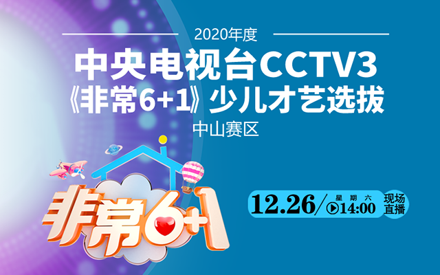 2020年度中央電視臺(tái)CCTV3《非常6+1》少兒才藝選拔中山賽區(qū)復(fù)賽將于12月26日下午2點(diǎn)舉行,中山日?qǐng)?bào)報(bào)業(yè)集團(tuán)·中山網(wǎng)全程直播,敬請(qǐng)關(guān)注!