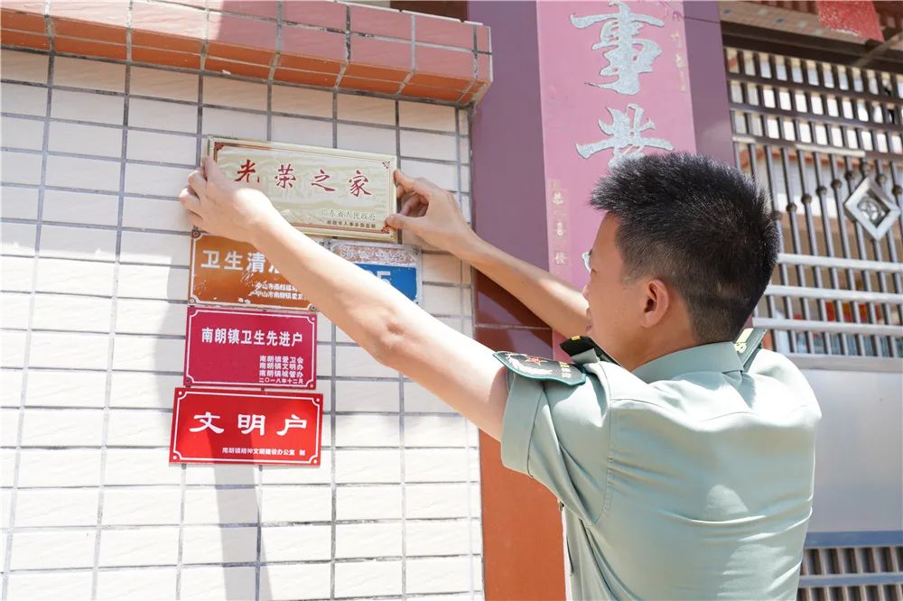 7月14日上午,南朗鎮(zhèn)武裝部、退役軍人服務(wù)中心為鎮(zhèn)內(nèi)6戶現(xiàn)役軍人家屬頒發(fā)“光榮之家”牌匾,為他們掛上承載著軍人榮耀的光榮牌。