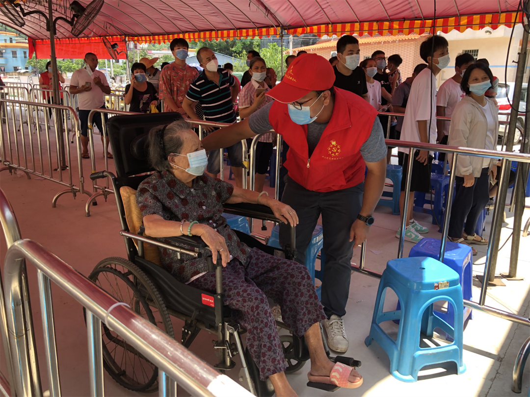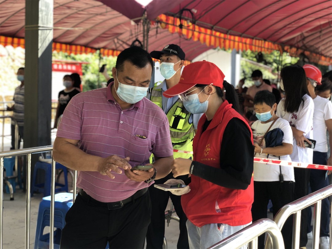在今天天氣高溫的情況下,全體工作人員身穿防疫服和志愿者服,每個人都是汗流夾背的,可是他們不怕苦,不怕累,不怕流汗,不怕自己被感染的風險,感謝他們的真誠付出和無私奉獻! |