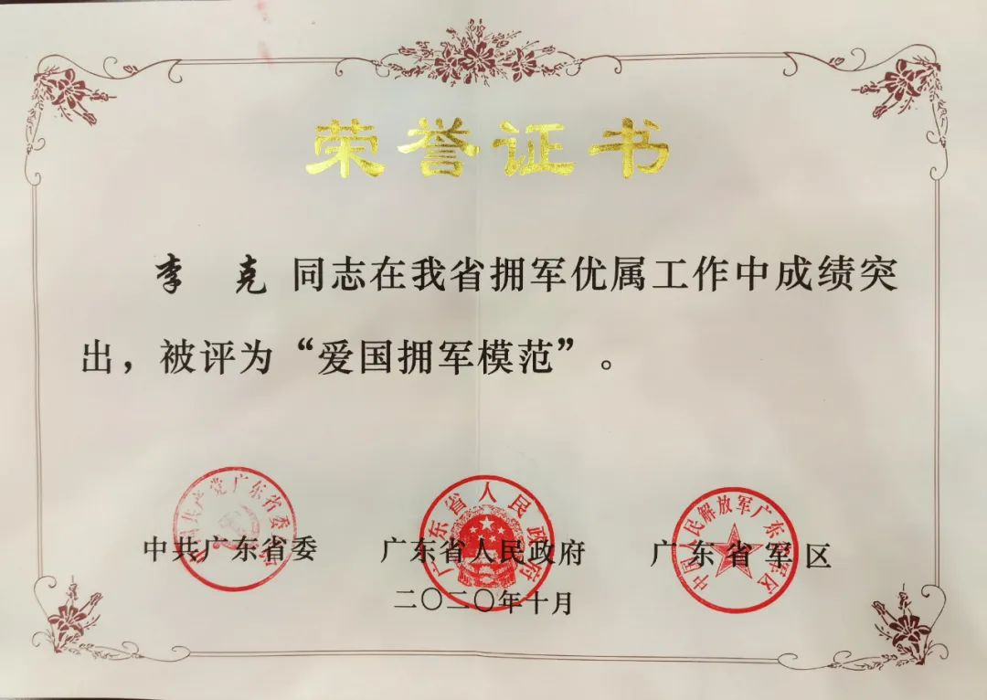 李克,現(xiàn)年61歲,任中山市東區(qū)街道退役軍人紅旗志愿服務(wù)隊隊長。上世紀(jì)70年代末,李克曾參加對越自衛(wèi)反擊戰(zhàn),1981年退役后分配到國企工作,1991年下海經(jīng)商。退役后,李克積極投身于愛國擁軍事業(yè),2019年獲評為“中山好人”“中山最美退役軍人”“廣東最美志愿者”;2020年一季度獲評“廣東好人”“廣東省優(yōu)秀戰(zhàn)疫志愿服務(wù)典型”“廣東省愛國擁軍模范”。