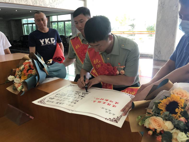 候選人副鎮(zhèn)長余添宏與劉德偉、劉品添兄弟倆親切握手并合影,歡迎他們回到家鄉(xiāng),贊揚(yáng)劉德偉、劉品添父母為國家培養(yǎng)出優(yōu)秀人才。希望兩兄弟能夠繼續(xù)保持軍人本色,以積極的態(tài)度迎接新挑戰(zhàn),以后在各自的崗位上建功立業(yè)。