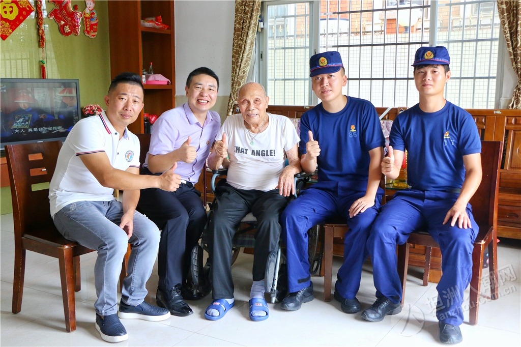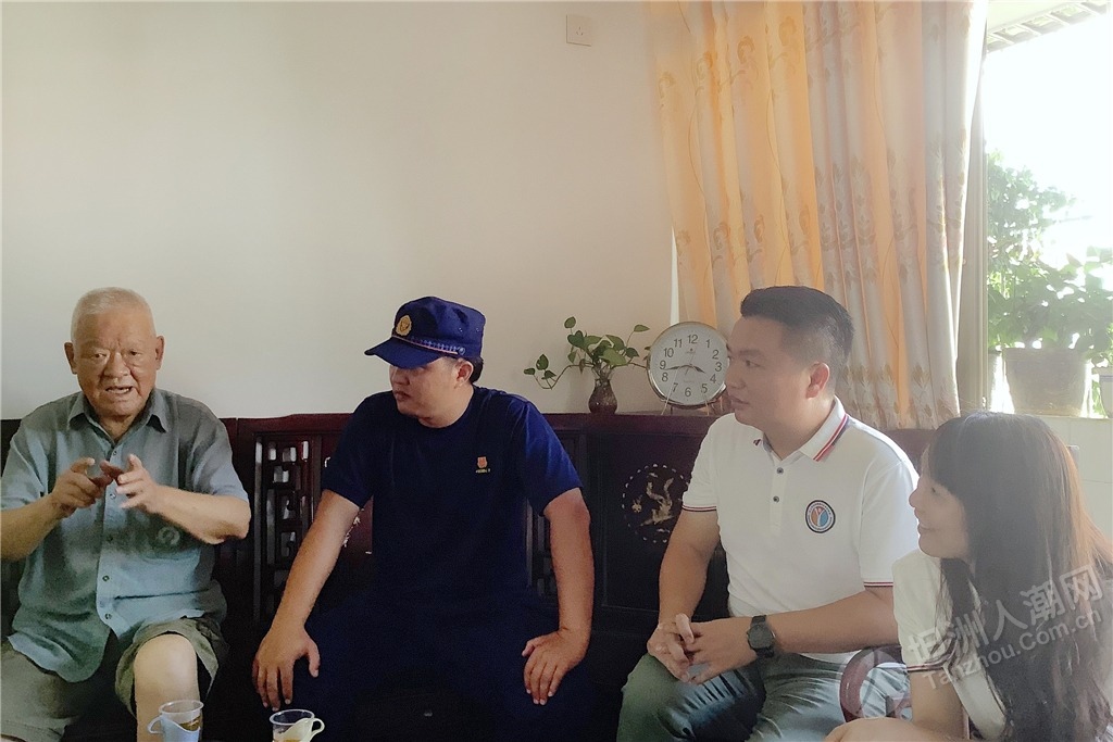 隨后,慰問組還邀請參戰(zhàn)老兵鄭金洪走進(jìn)中山市消防救援支隊(duì)坦洲大隊(duì)講述革命故事,給與會黨員干部和部分基干民兵送上了一堂生動、鮮活的紅色教育黨課,讓全體人員感受參戰(zhàn)老兵的精神洗禮。“在一次部隊(duì)作戰(zhàn)時,我和另一名貴州籍的戰(zhàn)友去攻打一個火力點(diǎn),我們一起在山腳的一塊石頭處掩護(hù),但根據(jù)我以往的作戰(zhàn)經(jīng)驗(yàn),我覺得這里不安全,于是趕緊對他說不要待在那塊石頭那,也不要站立,趕緊滾到下面的公路去;好在他聽從我的命令后,迅速地做出反應(yīng)。當(dāng)我們到達(dá)安全地方時,長舒一口氣,一直聽到有子彈嗖嗖嗖地從那塊石頭附近穿梭而過;而那位戰(zhàn)友感慨地跟我說‘班長,好在你迅速做出反應(yīng),不然我在那不是受傷就是死了。”鄭金洪以親身經(jīng)歷聲情并茂地向大家講述了當(dāng)年戰(zhàn)火紛飛的戰(zhàn)斗經(jīng)歷。 ▲慰問組一行聆聽烈士遺屬陳北根講述他父親生前與敵斗爭的英雄故事。
