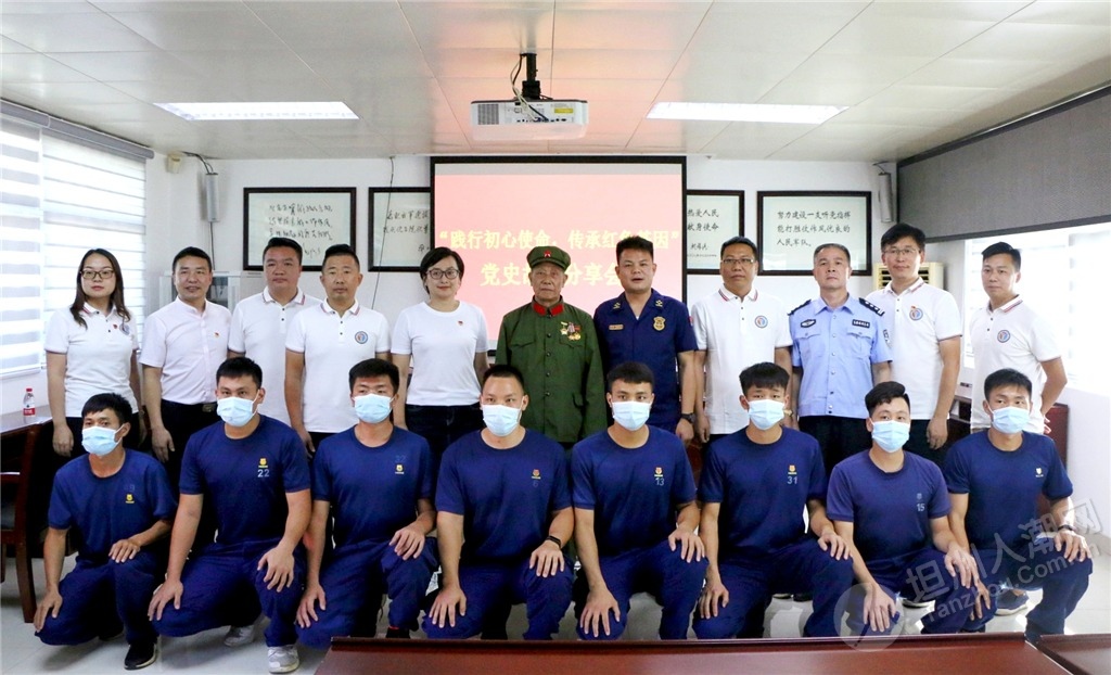 感人至深的英雄事跡,使與會黨員干部沉浸其中,深刻感受到了每一枚紅色勛章所承載的歷史記憶。中隊(duì)消防員、坦洲鎮(zhèn)民兵海防巡邏排排長黃俊謙說:“聆聽了鄭叔生動的紅色故事,我備受鼓舞,作為一名基層消防員和民兵骨干,在今后的工作中我要發(fā)揚(yáng)革命前輩的優(yōu)良傳統(tǒng),爭做時代新人,為坦洲消防救援事業(yè)和海防應(yīng)急搶險工作貢獻(xiàn)自己的青春和熱血!” ▲與會人員和參戰(zhàn)老兵鄭金洪合影留念