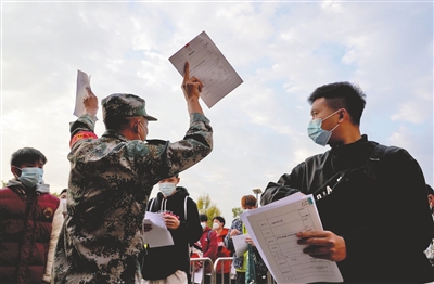 應(yīng)征青年核酸檢測合格后,在帶檢員的引導(dǎo)下進(jìn)入體檢環(huán)節(jié),全程實(shí)行全封閉式管理。