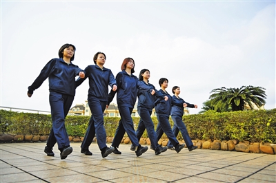 應(yīng)征女青年在進(jìn)行操練。記者 易承樂(lè) 攝