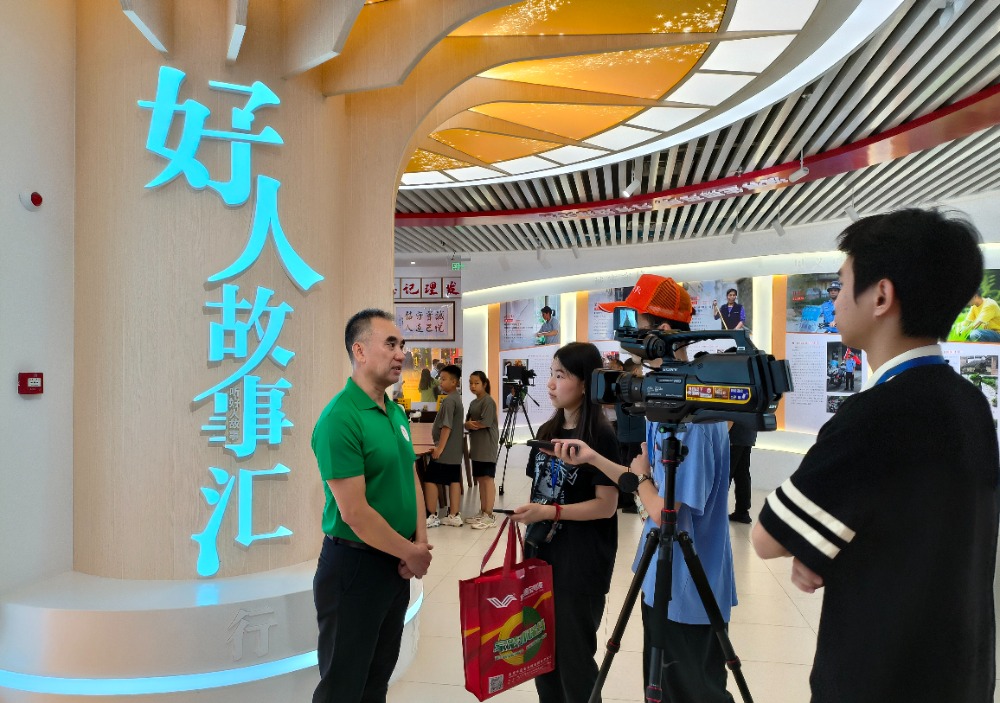 本次調(diào)研中,來自中央、省、市約20家媒體的記者,先后走訪東鳳鎮(zhèn)退役軍人服務(wù)中心、中山好人館等地。通訊員供圖 16日上午,媒體采風團來到了中山好人館,退役軍人代表李克和孫宏寧帶領(lǐng)采風團觀摩好人館,并介紹了退役軍人在志愿服務(wù)上如何為推動全市的社會道德建設(shè)貢獻力量。“中山退役軍人利用志愿服務(wù),宣傳了軍人作風優(yōu)良的傳統(tǒng),這種公益形式也是對社會力量的補充,能夠?qū)θ鐣鸬桨駱幼饔??!绷私獾街猩绞胁蹞碥娭驹阜?wù)隊深入基層開展國防和愛國主義教育、中山市擁軍支前紅旗服務(wù)隊參與各項日常生活應(yīng)急救援的事跡后,《小康》雜志記者王莉華說,中山市退役軍人深度參與公益所展現(xiàn)出的擔當和作為給她留下深刻印象。中國報道網(wǎng)《前沿資訊》欄目主編陳偉贊發(fā)出感慨,“志愿服務(wù)隊的工作非常扎實,退役軍人服務(wù)中心在用心用情服務(wù)退伍老兵上也做得很到位?!?/p>  退役軍人代表李克接受采訪。通訊員供圖