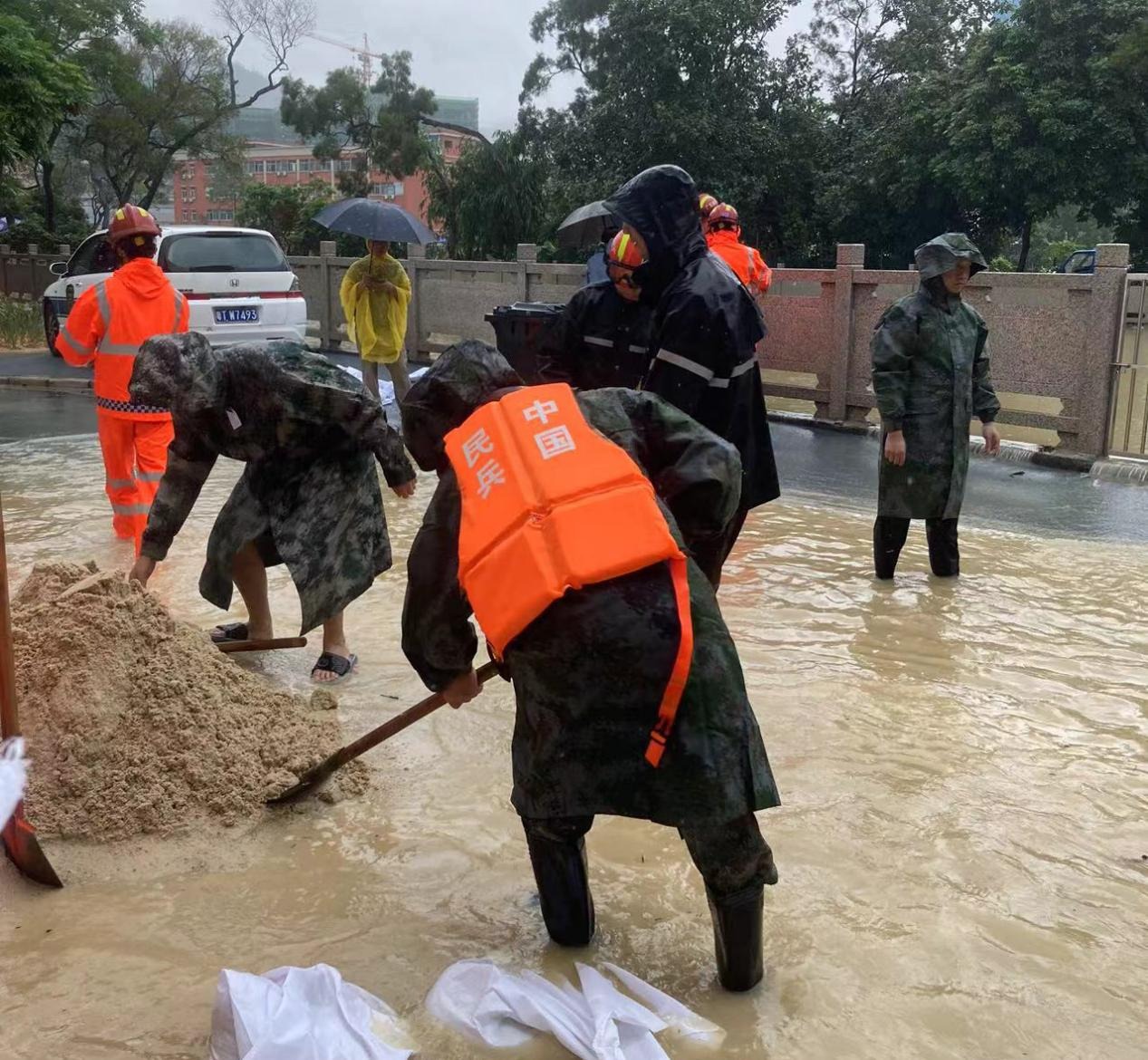 5月4日清晨,中山市氣象臺發(fā)布南部鎮(zhèn)街暴雨紅色預警,三鄉(xiāng)鎮(zhèn)、坦洲鎮(zhèn)、神灣鎮(zhèn)等地區(qū)出現(xiàn)3小時100毫米以上降雨。受強降雨影響,中山部分鎮(zhèn)街出現(xiàn)內(nèi)澇和水浸。在中山市、鎮(zhèn)兩級三防指揮部統(tǒng)一指揮下,三鄉(xiāng)鎮(zhèn)人民武裝部、退役軍人服務中心第一時間啟動搶險救災預案,組織各村(社區(qū))民兵應急分隊和退役軍人紅旗志愿服務隊嚴陣以待。 4日上午9時30分,中山市擁軍支前紅旗服務隊啟動應急響應預案,20名隊員已全部處于待命狀態(tài);上午10時完成第一梯隊10名隊員集結,配備配拖車裝備、快艇一艘、沖鋒舟兩艘、激流馬甲25件,油鋸、繩索、對講機一批,同時與中山市應急部門保持聯(lián)系,隨時準備開展救援工作。 4日上午10時30分,五桂山街道人民武裝部、退役軍人服務中心等部門組織20余名民兵、退役軍人及應急救援志愿者等力量為南橋新村10余戶受災群眾裝填沙袋堵門防止進水,全力筑牢防汛安全線。 五桂山街道民兵、退役軍人及應急救援志愿者等力量為南橋新村10余戶受災群眾裝填沙袋堵門防止進水。通訊員供圖