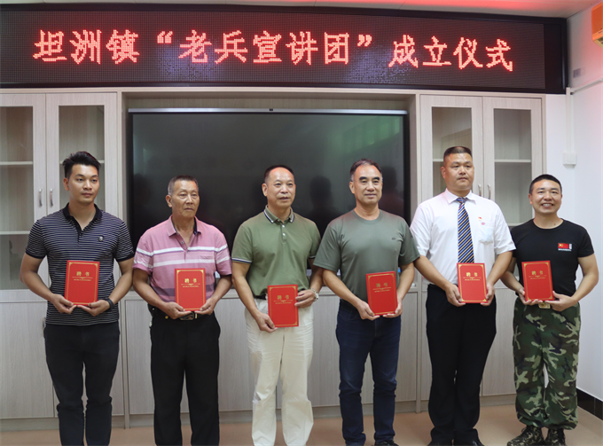 7月26日,中山市坦洲鎮(zhèn)成立全市鎮(zhèn)街首個“老兵宣講團”。中山市退役軍人事務局、中山市退役軍人服務中心,坦洲鎮(zhèn)公共服務辦公室、退役軍人服務中心等單位相關負責人,坦洲鎮(zhèn)“老兵宣講團”成員等出席成立儀式。 成立儀式現(xiàn)場,坦洲鎮(zhèn)退役軍人服務中心負責人簡要介紹了“老兵宣講團”成立的目的、任務及宣講團成員的基本情況。相關領導為“老兵宣講團”授旗,并頒發(fā)聘用證書。  ▲坦洲鎮(zhèn)老兵宣講團成員獲頒聘書。