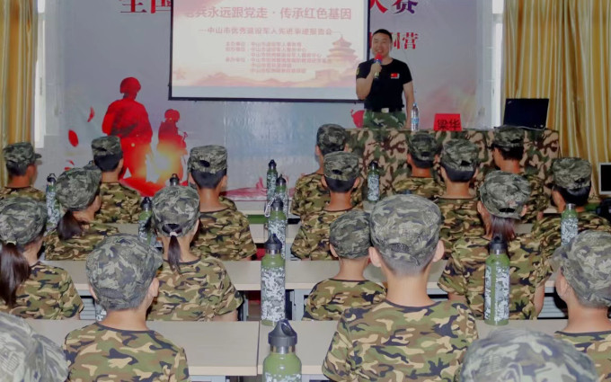 老兵鄭容添表示,老兵宣講團是一個學習的平臺,加入宣講團對個人來說是一種義務與責任,成員們將不忘初心,牢記使命,為坦洲的國防和青少年成長教育盡一點微薄之力,為坦洲和美發(fā)展講好優(yōu)良傳統(tǒng)和革命故事,激勵青少年健康成長。 “老兵宣講團”各成員在現(xiàn)場分享退役后工作和創(chuàng)業(yè)經歷,介紹了開展各類志愿活動的故事。老兵們的好經驗、好做法讓大家很受啟發(fā)。 坦洲鎮(zhèn)公共服務辦公室負責人表示,退役軍人為國防和軍隊建設作出了重要貢獻,是社會主義現(xiàn)代化建設的重要力量,是黨和國家的寶貴財富。組建“老兵宣講團”開展紅色宣講活動意義重大,要結合在“八一”“國慶”“黨的二十大”等重要時間節(jié)點,有計劃地開展“老兵宣講團”進學校、進社區(qū)、進農村、進機關、進企業(yè)等宣講活動,大力弘揚優(yōu)秀退役軍人的先進事例,營造崇軍優(yōu)屬的良好社會氛圍,為全鎮(zhèn)經濟社會發(fā)展凝聚強大力量。 當天下午,“老兵宣講團”成員梁華來到坦洲鎮(zhèn)雛鷹國防教育研學基地,為開展夏令營軍訓的60余名學生上了一堂生動的愛國主義教育課。梁華結合自身16年的軍旅生涯向學生們普及國防教育知識,講述強軍興軍歷史及中國軍人的職責和使命,讓孩子們近距離感受軍人氣質和榮耀,增強他們強國強軍、保家衛(wèi)國的責任感和使命感。  ▲“老兵宣講團”成員梁華給學生上國防教育課。
