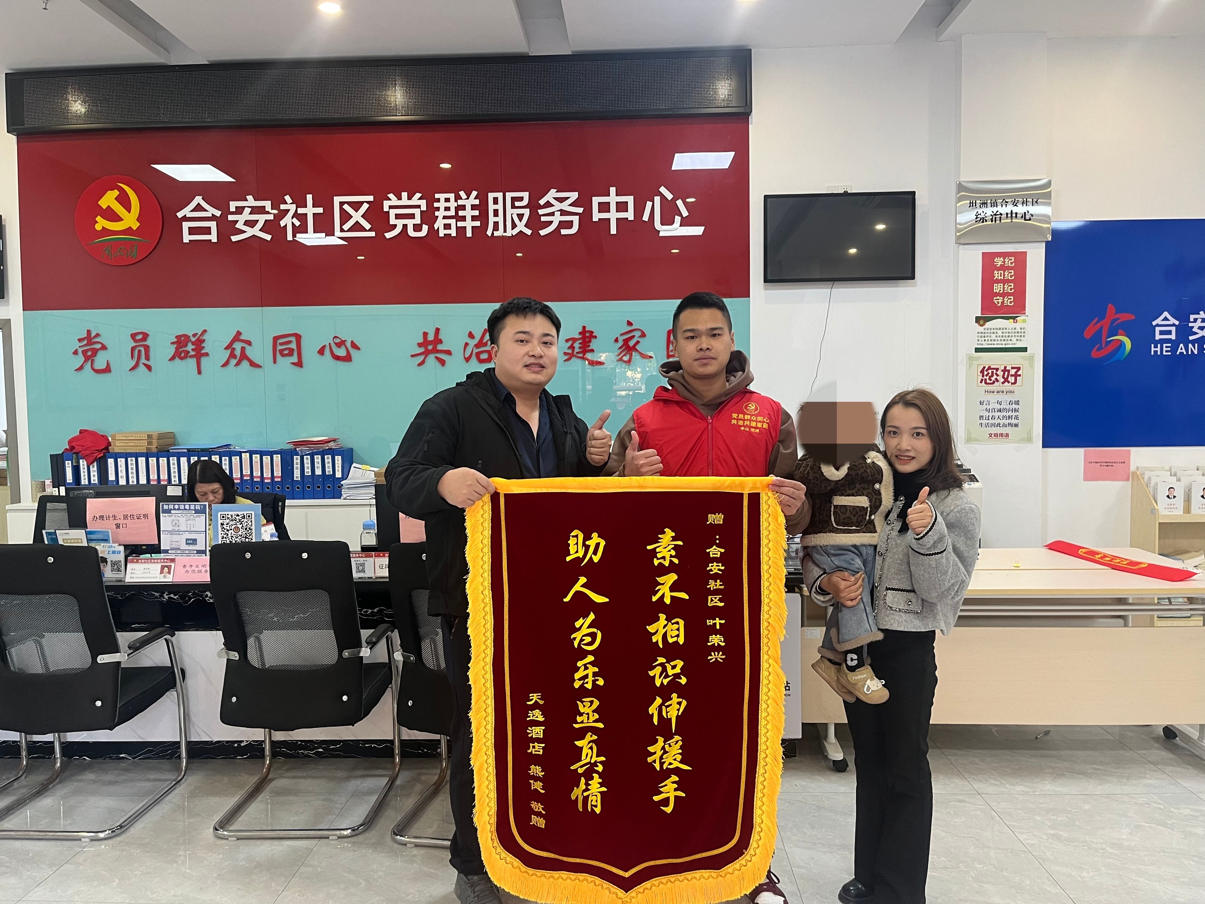 1月16日下午,坦洲鎮(zhèn)合安社區(qū)工作人員、退役軍人葉榮興像往常一樣工作,一對(duì)年輕的夫婦到該社區(qū)黨群服務(wù)中心找到他,并親手送上了一面錦旗?!敖K于找到你了,恩人啊,當(dāng)面跟你說一聲謝謝!”原來,1月初,葉榮興仗義出手,令這個(gè)家庭的孩子及時(shí)得到救助,讓夫妻倆銘記在心。  葉榮興(中)仗義出手,收到由熊健夫婦送出的錦旗。受訪者供圖 據(jù)丈夫熊健回憶,1月9日晚上,孩子?jì)寢寧е鴥蓺q多的孩子在外面玩,回到家里洗完澡后,孩子便開始發(fā)高燒,并伴隨著嘔吐、抽搐,情況一度十分危急?!拔耶?dāng)時(shí)不在家里,孩子?jì)寢屢矝]啥經(jīng)驗(yàn),看到孩子這種情況就是一直哭?!?/p> 急促的哭聲和求救聲引起了葉榮興的注意,作為社區(qū)工作人員,當(dāng)時(shí)他剛結(jié)束了“粵居碼”的入夜推廣工作?!拔覔?dān)心有人吵架,便循著聲音找了過去。”葉榮興說道。見到孩子?jì)寢屢约傲私馇闆r后,葉榮興一面安撫孩子?jì)寢?,一面撥打?bào)警電話求助,很快趕達(dá)醫(yī)院?!搬t(yī)生說孩子是因?yàn)楦邿鸬囊幌盗袝炟?、嘔吐,不過還好送醫(yī)及時(shí)。”熊健說,孩子是第一次出現(xiàn)這種情況。當(dāng)晚夫妻倆的注意力都在孩子身上,等回過頭來想感謝葉榮興時(shí),卻發(fā)現(xiàn)他早已悄然離去。 最終,熊健通過小區(qū)物業(yè)、社區(qū)間接找到葉榮興,與妻子一起當(dāng)面對(duì)他表示感謝,他們的孩子也脫離了危險(xiǎn),身體正在逐漸恢復(fù)。記者看到,在熊健所贈(zèng)的錦旗上寫著,“素不相識(shí)伸援手 助人為樂顯真情?!薄拔腋杏X沒什么的,人民群眾有需要的時(shí)候我都會(huì)出手?!苯邮懿稍L時(shí),葉榮興說道。 記者 李鑫 通訊員 梁華 廖金旻 ◆編輯:龍慧◆二審:陳吉春◆三審:周亞平 |