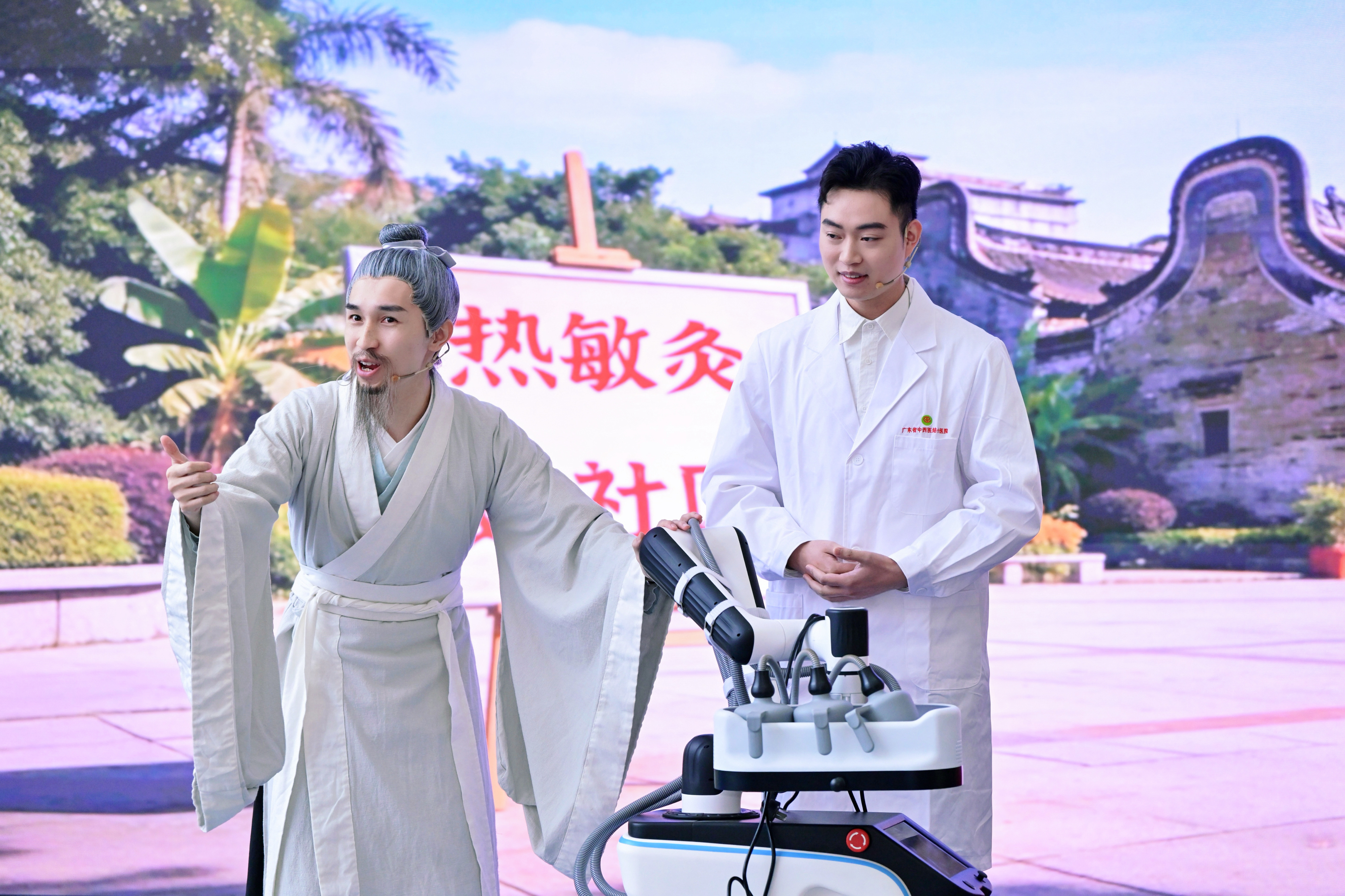 別開生面的情景劇《醫(yī)道千年 艾香傳心》,仿佛開啟了一條時(shí)光的甬道,將葛洪鮑姑行灸南海的古老傳說,與當(dāng)代熱敏灸技藝精巧勾連。一根艾草,一縷輕煙,串起了千年的生命旅程,也點(diǎn)燃了一場靜默而深刻的古今對話。