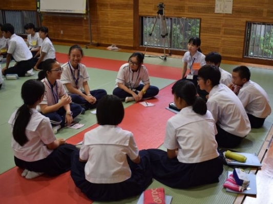中山市華僑中學(xué)學(xué)生與櫻馬場中學(xué)生友好交談