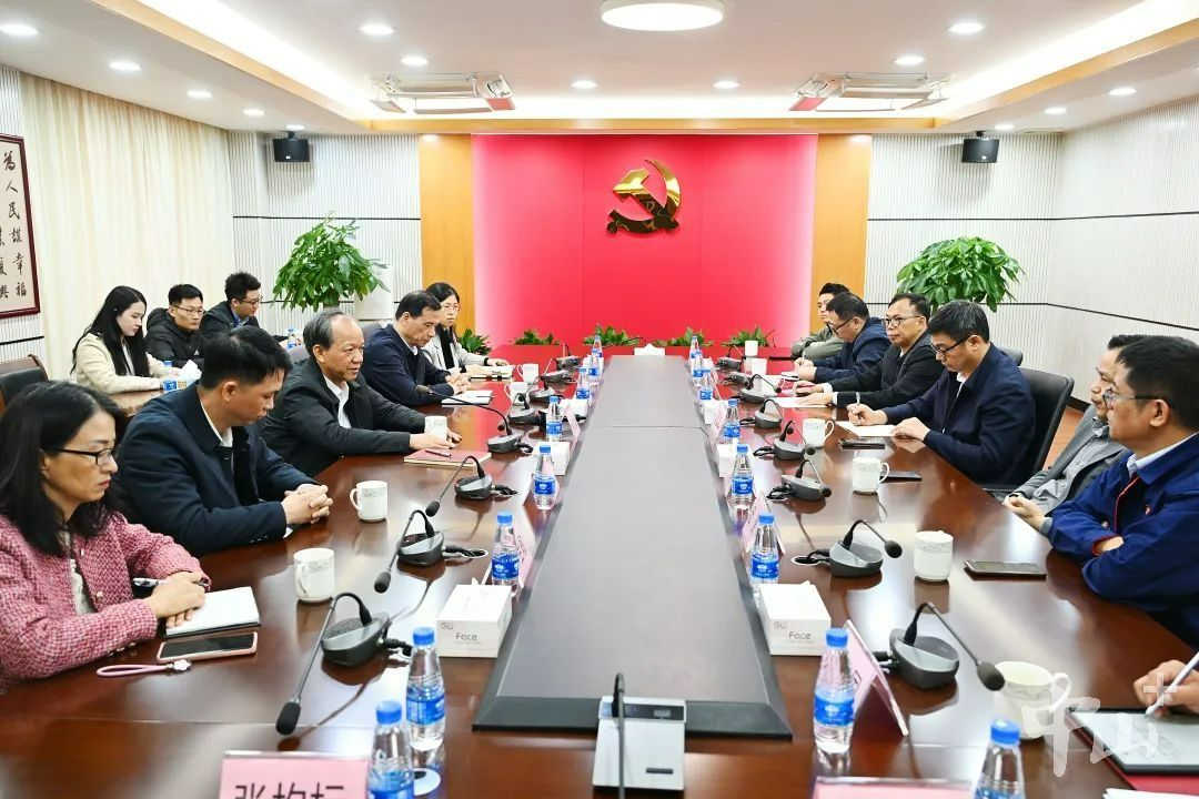郭文海與南頭鎮(zhèn)企業(yè)家代表進(jìn)行座談交流。 記者 夏升權(quán) 攝