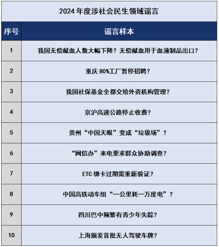 2024年2月,個(gè)別自媒體發(fā)出“無(wú)償獻(xiàn)血人數(shù)大幅下降,無(wú)償獻(xiàn)血用于血液制品出口”的不實(shí)言論,利用全社會(huì)對(duì)公益事業(yè)的關(guān)注和信息不對(duì)稱(chēng)誤導(dǎo)公眾,故意抹黑我無(wú)償獻(xiàn)血政策,影響血液采集正常秩序,引發(fā)公眾對(duì)無(wú)償獻(xiàn)血的誤解。一些別有用心之人惡意編造謠言“我國(guó)社?;鹑冀唤o外資機(jī)構(gòu)管理”,抓住社?;鸸芾碇械牟糠终:献鬟M(jìn)行夸大和錯(cuò)誤解讀,以偏概全、歪曲事實(shí),引發(fā)公眾對(duì)社保體系的擔(dān)憂(yōu)和恐慌。還有一些自媒體夸大其詞、虛構(gòu)數(shù)據(jù),捏造謠言“重慶80%工廠暫停招聘”,干擾勞動(dòng)力市場(chǎng)正常秩序,影響地區(qū)經(jīng)濟(jì)發(fā)展。所謂“‘網(wǎng)信辦’來(lái)電要求群眾協(xié)助調(diào)查”則實(shí)為詐騙分子冒充權(quán)威機(jī)構(gòu)行騙,嚴(yán)重?fù)p害政府部門(mén)的公信力。