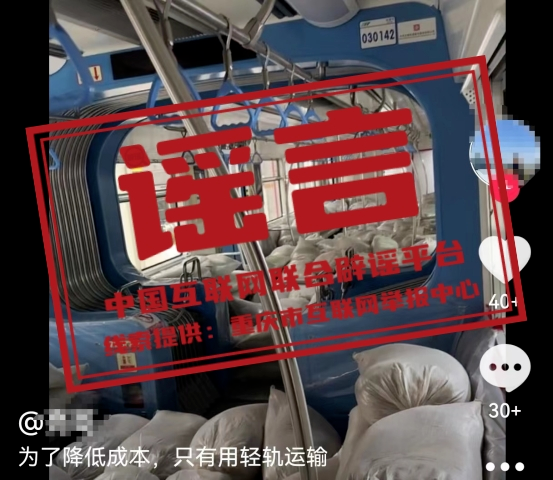 謠 言 為降低成本,重慶用輕軌運沙?