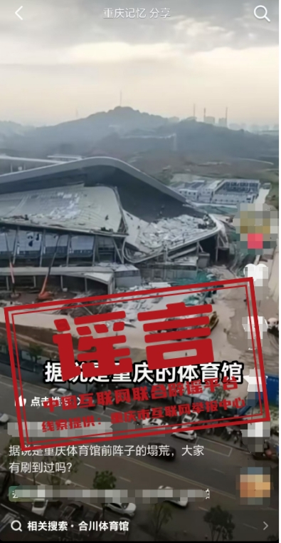 真相:近日,某網民發(fā)布信息稱“據(jù)說是重慶體育館前陣子塌荒了”,并配發(fā)有圍擋的體育館外景圖片,引發(fā)關注。經當?shù)鼐W信部門向相關部門核實,網傳信息系謠言。重慶未發(fā)生類似事件,網傳圖片實為重慶市合川區(qū)體育中心在建場景。該體育中心已于2024年4月17日竣工交付,并成功舉辦了重慶市第七屆運動會。調查發(fā)現(xiàn),關于“重慶體育館坍塌”的謠言最早出現(xiàn)在2023年9月,屬地相關部門也對此進行過辟謠。網民為博取關注、吸引流量翻炒“老謠”,故意編造“重慶體育館坍塌”謠言。目前,警方正對造謠網民展開調查。(來源:“重慶辟謠”微信公眾號)