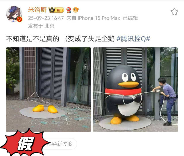 比如騰訊公司門口的企鵝雕塑,公司為了防御臺風(fēng),將企鵝用繩拴了起來。而有網(wǎng)民傳播的圖片顯示企鵝只剩雙腳,上身被風(fēng)吹走。騰訊QQ回應(yīng):“鵝拴著呢,穩(wěn)穩(wěn)的?!?/p>