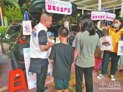 9月25日,夜幕降臨,中山市南區(qū)大信星匯店外,南區(qū)打擊治理電信網(wǎng)絡(luò)犯罪、掃黑除惡暨禁毒宣傳晚會的精彩表演吸引了不少市民駐足觀看。李德朗身穿白色的義工服,正積極向來來往往的行人介紹各款由戒毒學員制作的手工作品。被毒癮困擾多年成功戒斷的李德朗在清風自游人公益服務(wù)中心社工引導下加入“友心人”隊伍,成為一名義工,對徹底擺脫毒癮更有信心。