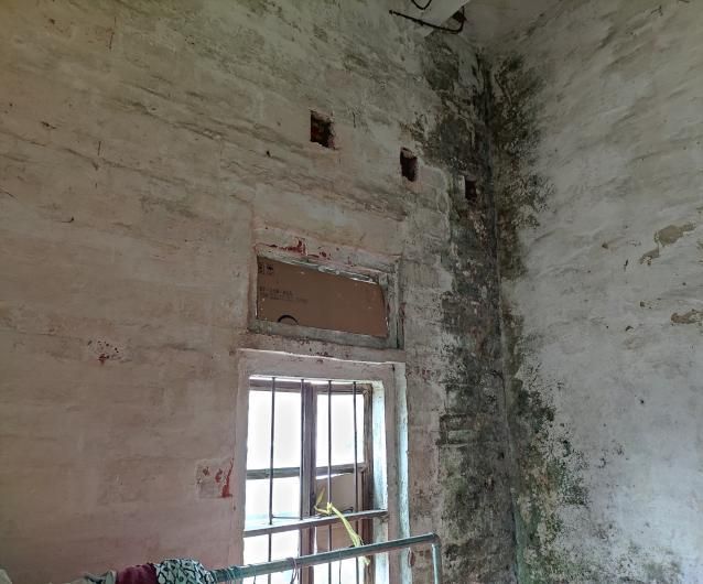 當天下午,兩名向日葵社工來到了阿耿家中,阿耿看到社工的到來,仿佛看到了希望的曙光。阿耿家非常的破舊,是一幢年久失修的紅磚房,門窗都是木頭制成的,已經(jīng)破爛不堪。進到房子里面,看到阿耿現(xiàn)在是把廚房用具搬到了客廳,本來就小的客廳顯得更加的擁擠。幾句寒暄過后,阿耿帶社工去到出現(xiàn)漏水情況的房間,一進到房間,社工就發(fā)現(xiàn)房間墻身已經(jīng)出現(xiàn)了非常嚴重的發(fā)霉情況,甚至有部分墻壁還長出了青苔,阿耿說:“這已經(jīng)出現(xiàn)很長一段時間了,前段時間下雨,墻壁一直滲水,這個房間原本是我住的房間,因為滲水情況越來越嚴重,就搬到旁邊原來作為廚房的房間居住,而且窗戶的玻璃都已經(jīng)全部掉落了,現(xiàn)在這個房間已經(jīng)完全不能住人了?!卑⒐⒄f完,就告訴社工還有另一處漏水的地方??吹搅硪惶幝┧牡胤?,社工發(fā)現(xiàn)墻壁因長期滲水導(dǎo)致墻面剝落且墻體分離,到處都是霉斑。阿耿表示,這是漏水情況最嚴重的房間,房子的其他地方也出現(xiàn)了不同程度的漏水,隨后,阿耿把社工帶到客廳,把其他漏水的地方和情況也向社工反饋。社工看到阿耿現(xiàn)在居住在如此破爛的房子,不禁感到一陣酸楚,同時也跟阿耿商討著怎樣去解決漏水的問題。