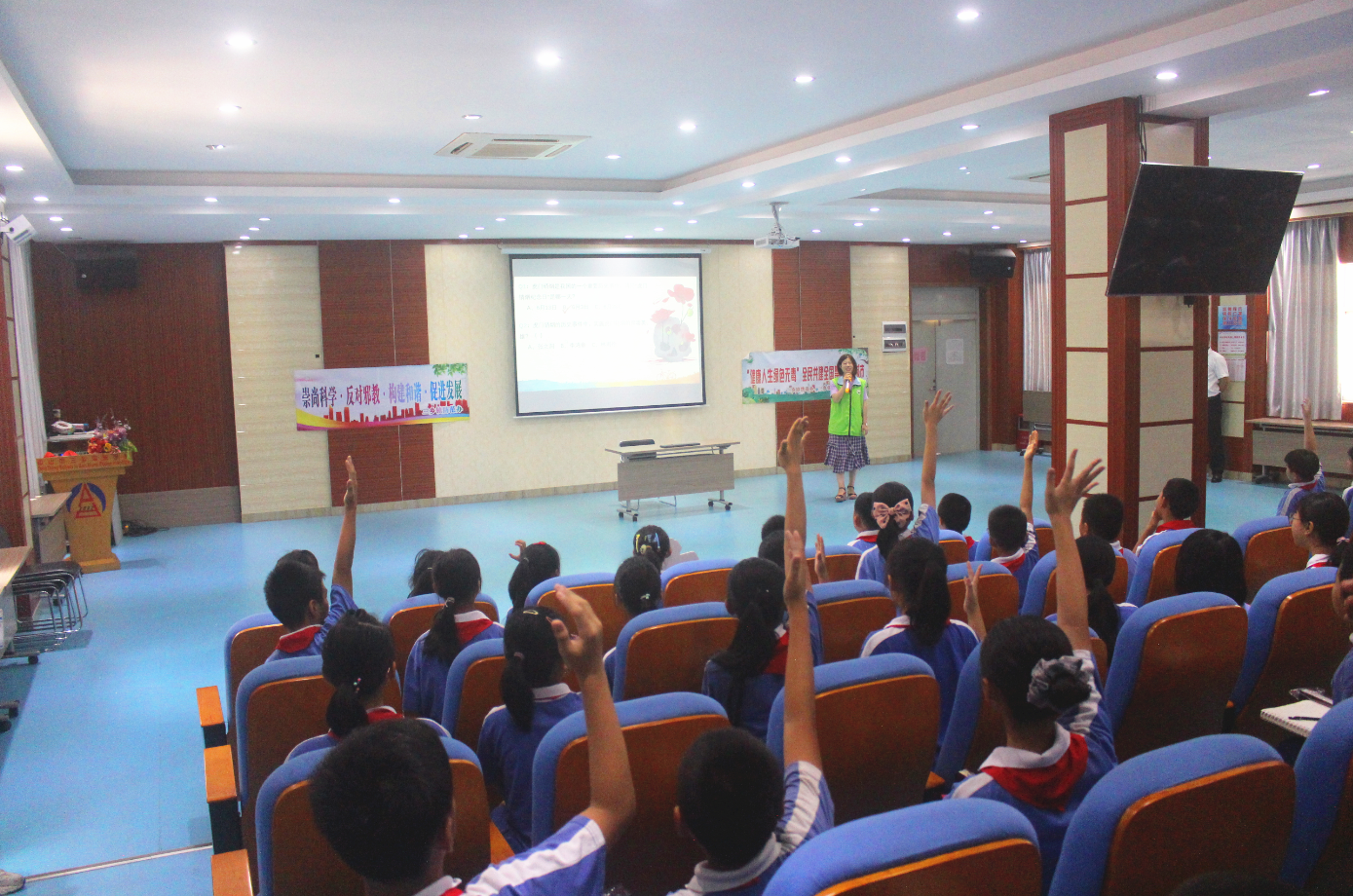 活動中,老師向現(xiàn)場學(xué)生詳細(xì)講解了虎門銷煙的歷史背景及事件始末,班主任、科任老師組織學(xué)生云觀看2021年廣東省6.3虎門銷煙182周年紀(jì)念日活動。隨后,通過問答互動的形式讓同學(xué)們加深對虎門銷煙歷史事件的認(rèn)識及掌握毒品知識。最后,老師帶領(lǐng)全體學(xué)生舉行了莊嚴(yán)的宣誓儀式,全體師生用堅定的聲音表達(dá)了堅決抵制毒品的態(tài)度和決心。