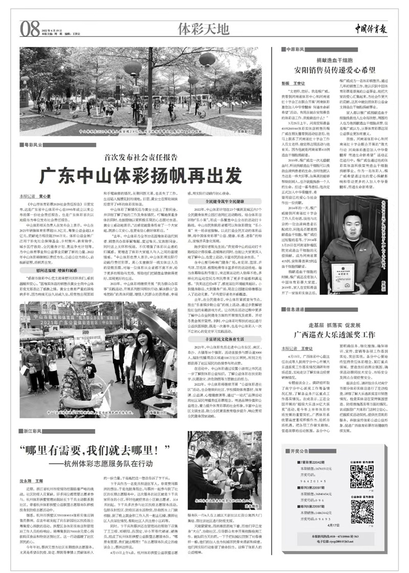 ▲中國體育報刊發(fā)了題為《首次發(fā)布社會責(zé)任報告——廣東中山體彩揚(yáng)帆再出發(fā)》一文。